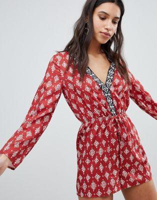 Done in one Printed design V-neck Long sleeves Stretch waistband Tie detail Regular cut Fits you just right