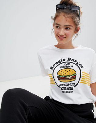 This is a bit of you Crew neck Burger motif So graphic it stops traffic Regular fit - true to size