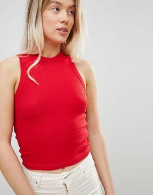 Plain design A wardrobe staple Ribbed fabric Round neck Racer back Cropped length What's up short-tee? Body-Conscious fit Holds you close