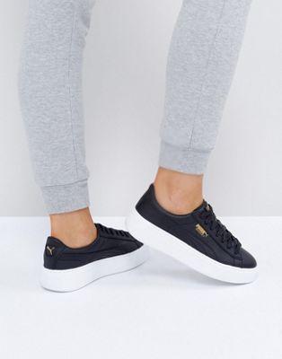 Puma Leather Basket Platform Sneakers In Black
