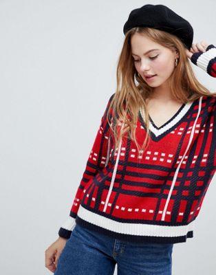 QED London check v neck sweater