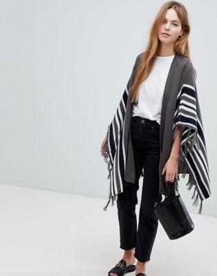 by QED London Cape design Unleash your inner superhero Open front Striped design Get in line Tassel trims More is definitely more Oversized fit