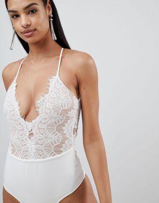 Rare London lace plunge bodysuit