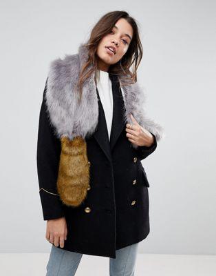 River Island Faux Fur Color Block Stole