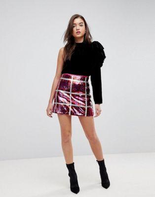 River Island Sequin Check Mini Skirt