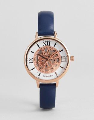 Sekonda Exposed Mechanics Leather Watch In Navy Exclusive To