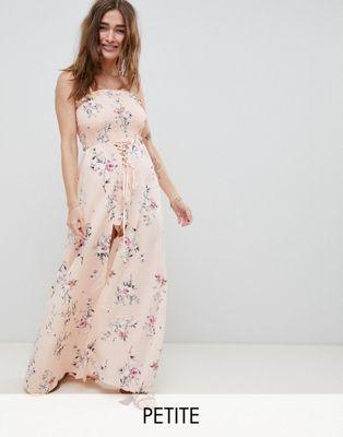 Cute, right? Floral print Bandeau design Shirred top Lace-up front Maxi skirt overlay Regular cut Fits you just right