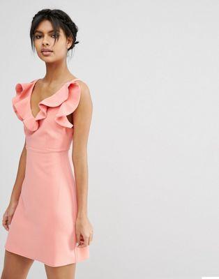Woven fabric Fully lined Structured design Frill front detail V-neckline Empire waist Zip back closure Regular fit - true to size Machine wash 77% Polyester, 17% Viscose, 6% Spandex Our model wears a UK 8/EU 36/US 4 and is 175 cm/5'9” tall