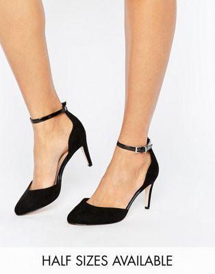 Faux-suede upper Ankle-strap fastening Soft pointed toe High heel Wipe with a damp cloth 50% Textile, 50% Other Materials Upper Heel height: 8cm/3"