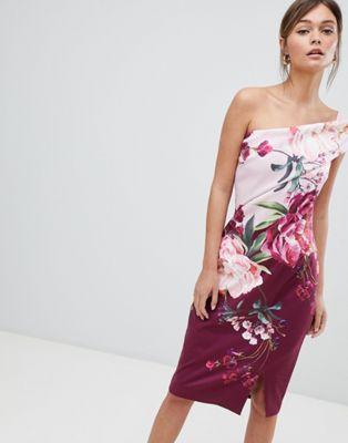 Ted Baker One Shoulder Pencil Dress in Serenity Floral