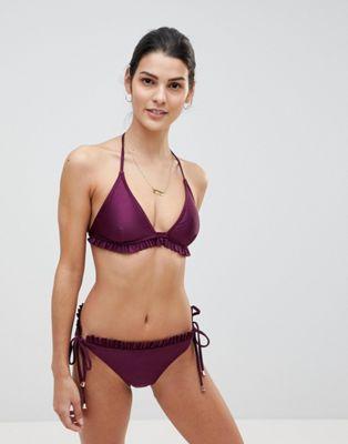 Just add water Plunge neck Triangle cups Ruffle trims Hello, frill seekers Tie closure