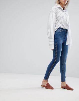 Dark-wash finish High-rise waist Zip fly Five pockets Lace-up sides Skinny fit - cut very closely to the body