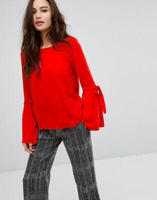 Lightweight fabric Scoop neck Long sleeves Flared cuff Tie detail Regular fit - true to size Machine wash 100% Polyester Our model wears a UK 8/EU 36/US 4 and is 173cm/5'8" tall