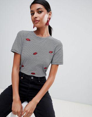 Warehouse stripe and lips t-shirt in multi