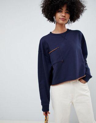 The thing you didn't know you needed Round neck Dropped shoulders Cropped style Contrast trim Raw-cut hem It's all in the details Oversized fit - falls generously over the body