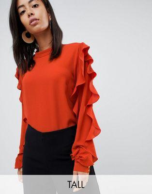 High neck Ruffle sleeves For the frill of it Regular fit Not too loose, not too tight