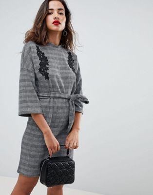 Check print It's never been so hip to be square High neck Dropped shoulders Embroidered design Not just your average print Self-tie waist Regular cut Fits you just right